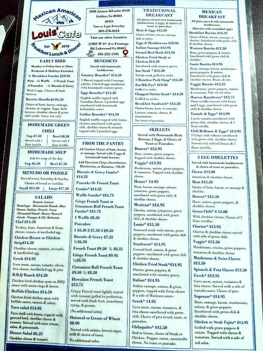 Louis' Cafe Menu