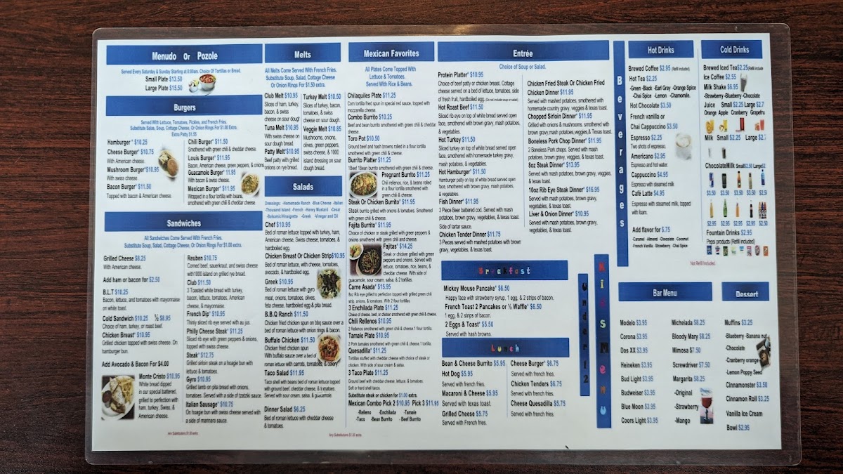 The menu at Louis' Cafe offers a variety of options primarily focused on breakfast, brunch, and lunch. It features an assortment of American and Mexican-inspired dishes alongside cafe staples, making it suitable for morning meals, casual lunches, and coffee breaks.
